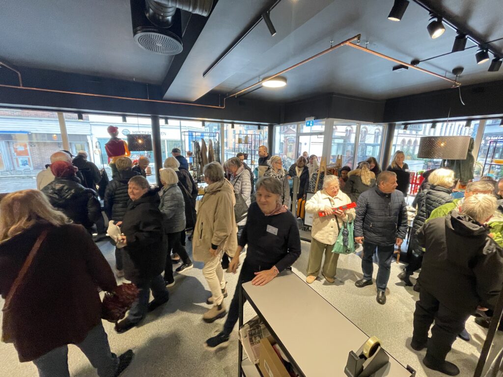 Åpningsdagen ble en suksess, med lang kassekø, god stemning og mange som tok turen innom for både handel og hyggelig prat.