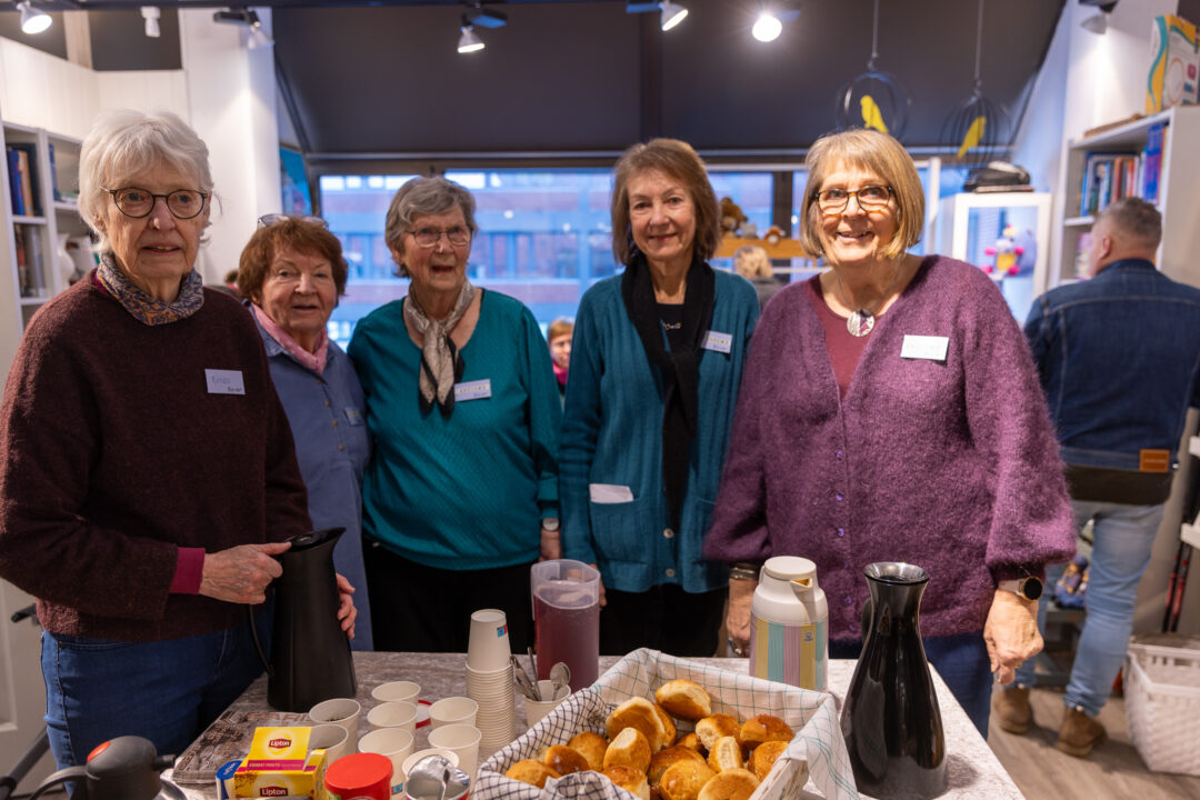 Da dørene åpnet, strømmet kundene inn. Bollene forsvant raskt, praten gikk rundt kafébordene, og salget «gikk så det suste», ifølge de frivillige.