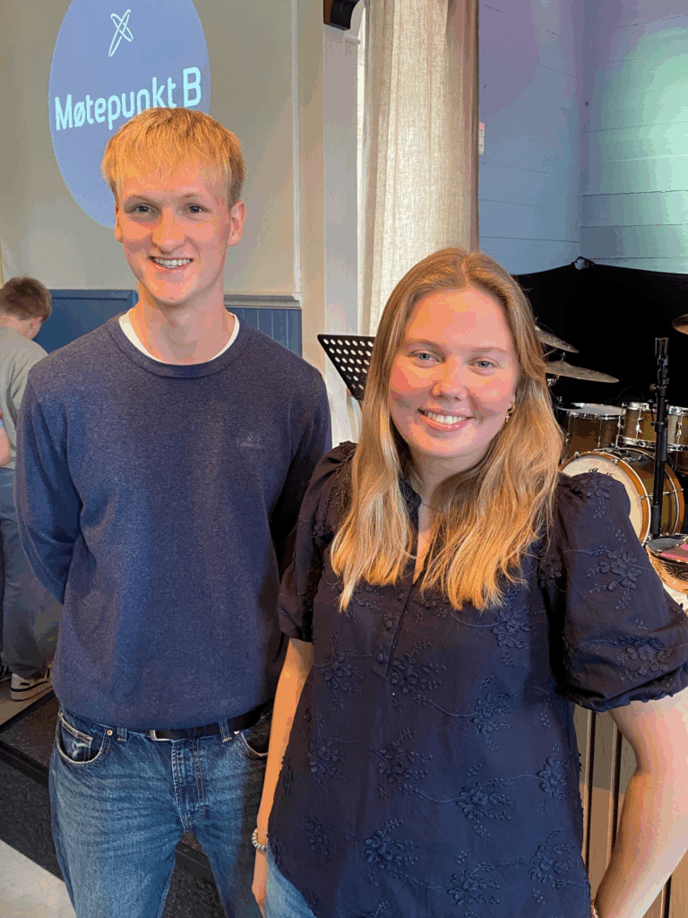 Markus og Vilde presenterast for Møtepunkt B. Foto: